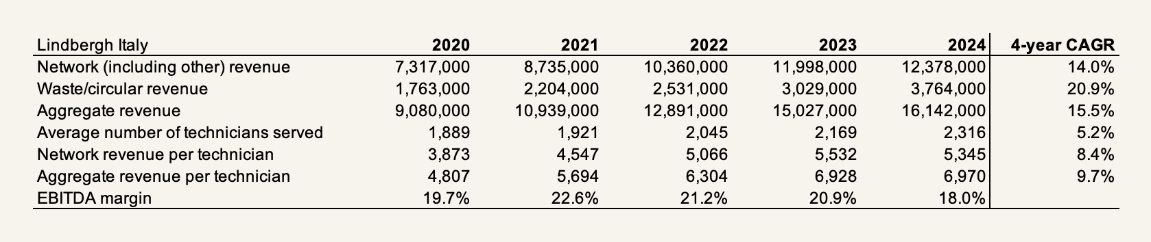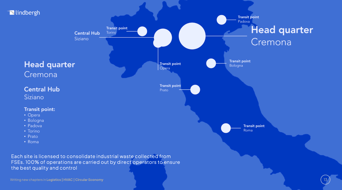 But even as cost advantages from scale economies — running lots of volume across high fixed costs — are usually best suited for homogeneous offerings that share a common process, Lindbergh still has route density going for it. Its vans, network of 120+ specialized subcontractors for micro-waste, and licensed consolidation points and warehouses (storing micro-waste and inbound parts from clients’ warehouses) cover nearly all of mainland Italy, with route optimization done all through Lindbergh’s proprietary software.