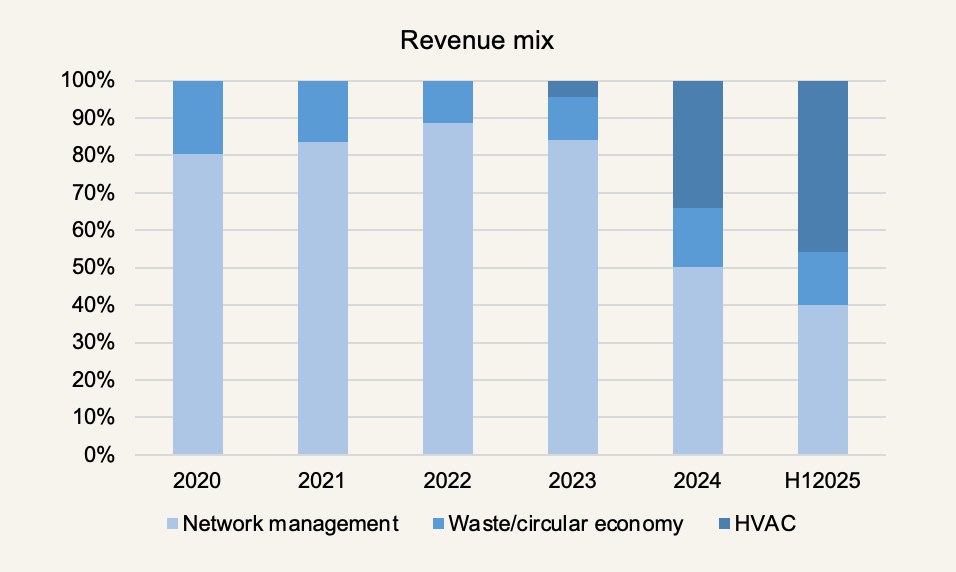 Unfortunately, one may think, these collective segments are just part of what Lindbergh does. While still over half of Lindbergh’s business as of H12025, network+waste/circular is about to be overhauled by Lindbergh’s other half: rolling up HVAC service providers.